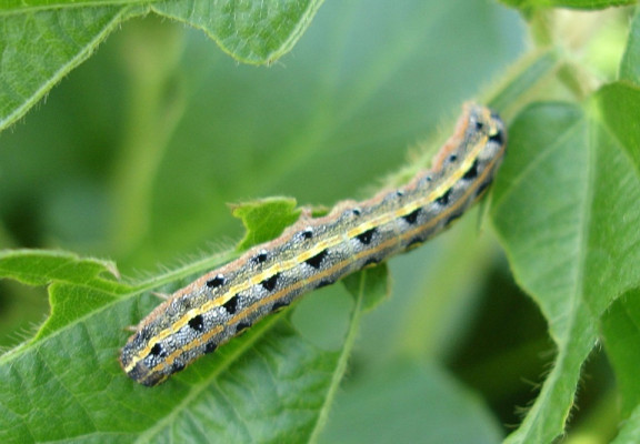 Spodoptera ornithogalli commonly feeds on soybeans, tobacco, corn, tomatoes, cotton, and alfalfa.