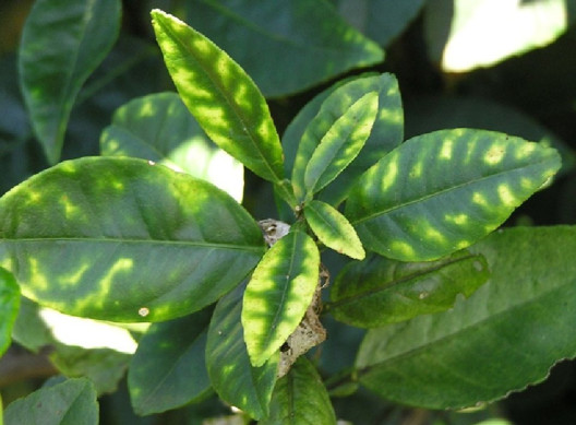 Stunting may also occur, and yellow patches will be present between the veins. It is most common in citrus trees.
